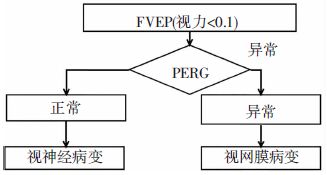 | 图 1 视力<0.1患者的视觉电生理检查流程和判读 |