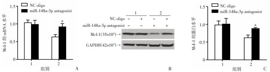 2.5 抑制miR-148a-3p可逆转VPA对Mcl-1的下调作用