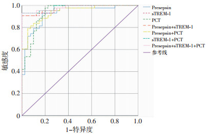 因此,本研究通过检测老年脓毒症患者血清中的Presepsin、sTREM-1和PCT,利用受试者工作特征(receiver operating characteristic, ROC)曲线,评价单独及联合检测三个指标在老年脓毒症早期诊断方面是否具有较高的敏感性和特异性,为评估预后和指导治疗提供参考。