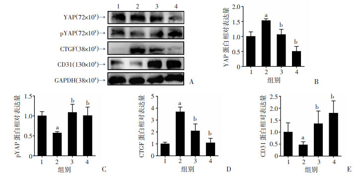 1 材料与方法 1.1 材料与试剂本实验采用的材料与试剂有:舒洛地特(意大利Alfasigma公司);胎牛血清(FBS,美国Hyclone公司);青-链霉素(中国碧云天);苏木精-伊红染液(C0105S,中国碧云天);CCK-8(BG0025,中国葆光公司);一抗:YAP(BS9920m,美国Bioworld公司);phosphor-YAP(BS94007,美国Bioworld公司);间充质细胞标志分子(connective tissue growth factor,CTGF,BS7445,美国Bioworld公司);CD31(BS7445,美国Bioworld公司)。辣根过氧化物酶标记山羊抗兔IgG(A0208,中国碧云天);辣根过氧化物酶标记山羊抗鼠IgG(A0216,中国碧云天);Cy3标记的山羊抗兔IgG(A0516,中国碧云天)。